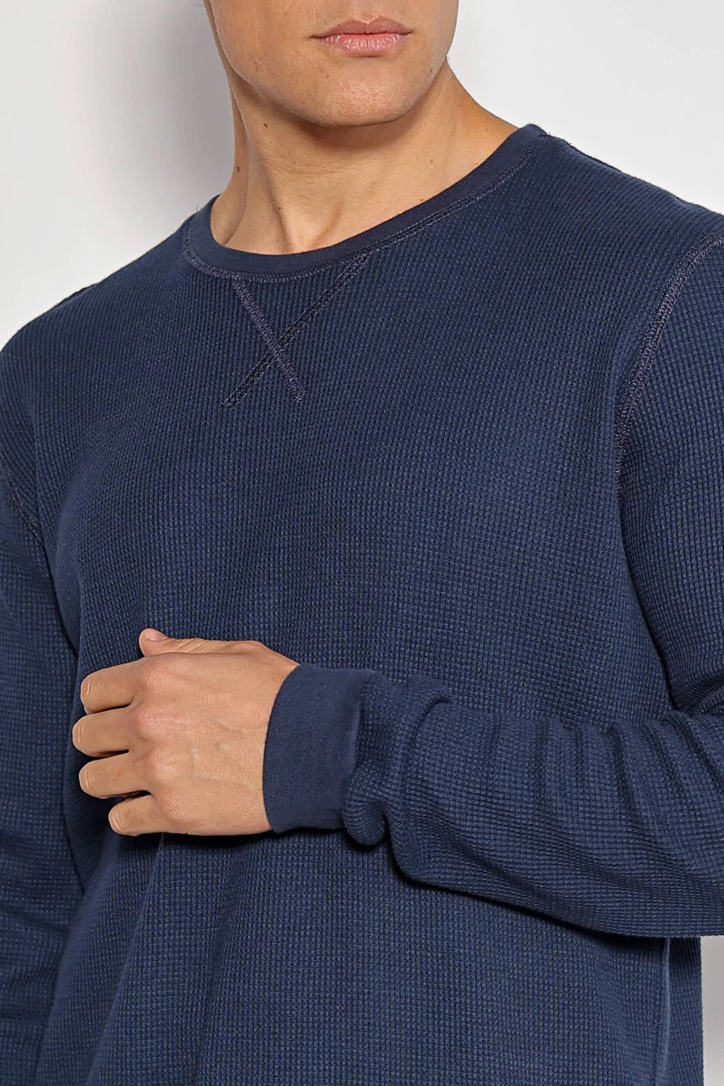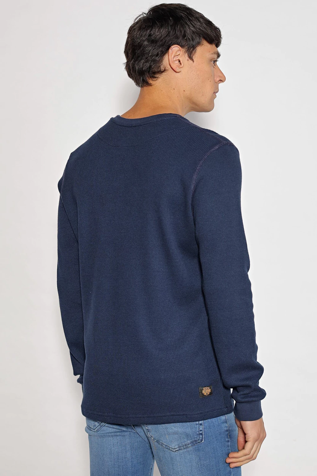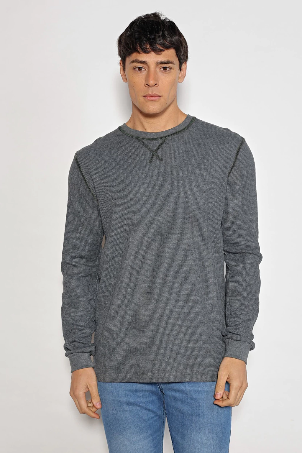 Buzo escote redondo con detalles de bordador al tono. Confeccionado en wafle puro algodón.