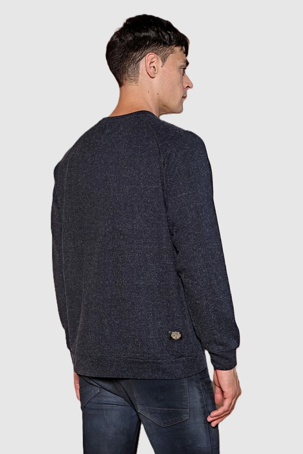Buzo de escote redondo y manga ranglan. Tiene detalles de bordador al tono y cuenta en el frente con una pequeña estampa con textura. Esta confeccionado en algodón rústico con lycra para mayor comodidad y flexibilidad.