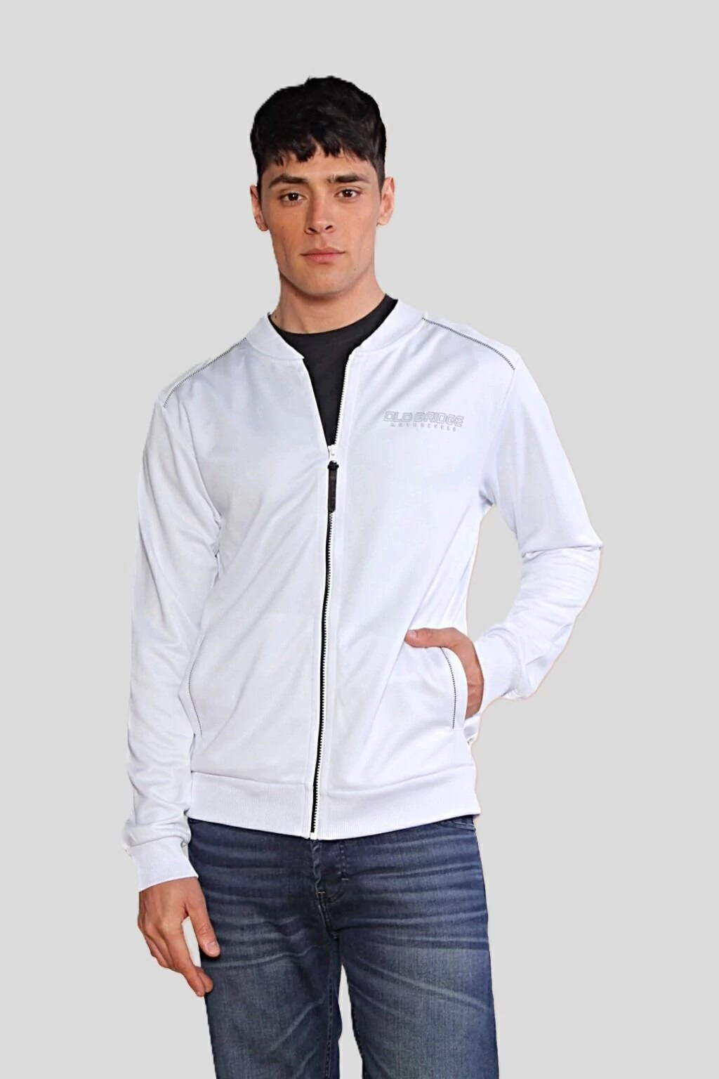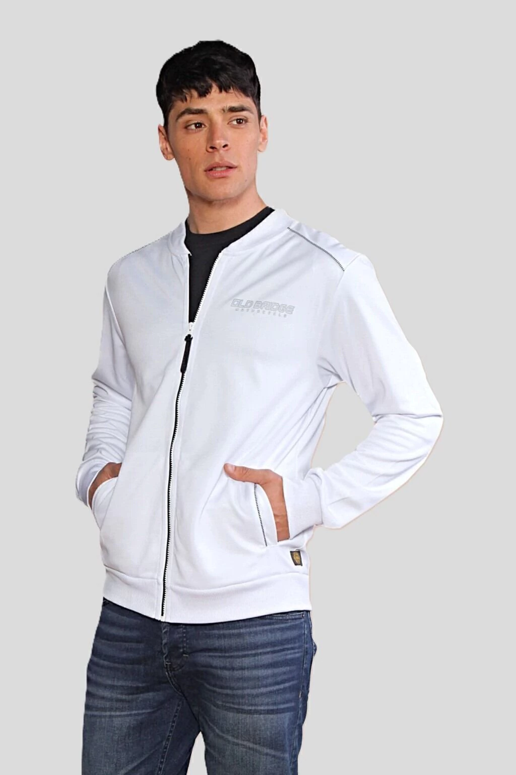 Campera con recorte en hombro y bolsillo ojales con detalles en vivo bicolor. Lleva un cierre central de plástico YKK combinado. Posee en el frente, un logo estampado en altura. Confeccionada en tela deportiva.