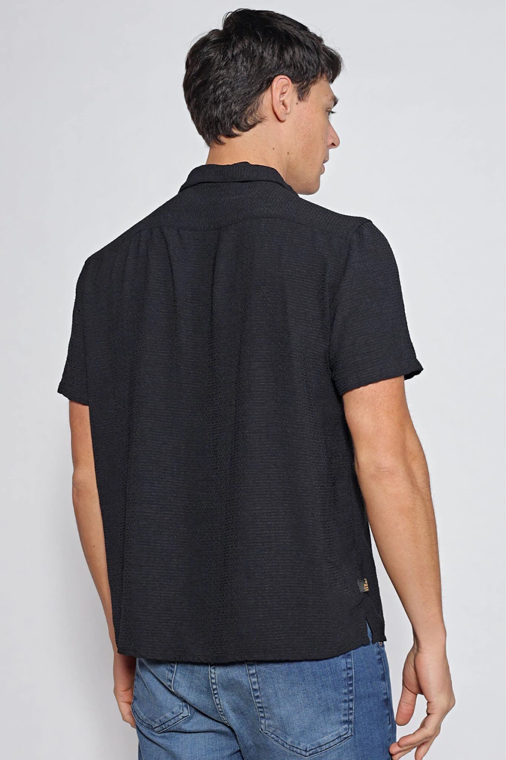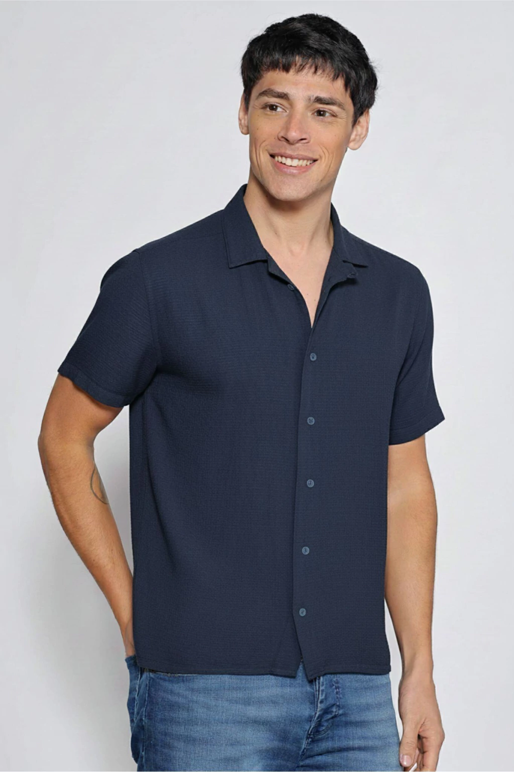 Camisa de Cloque, en manga corta, y calce regular. Tiene cartera con botones. Su calce es holgado.