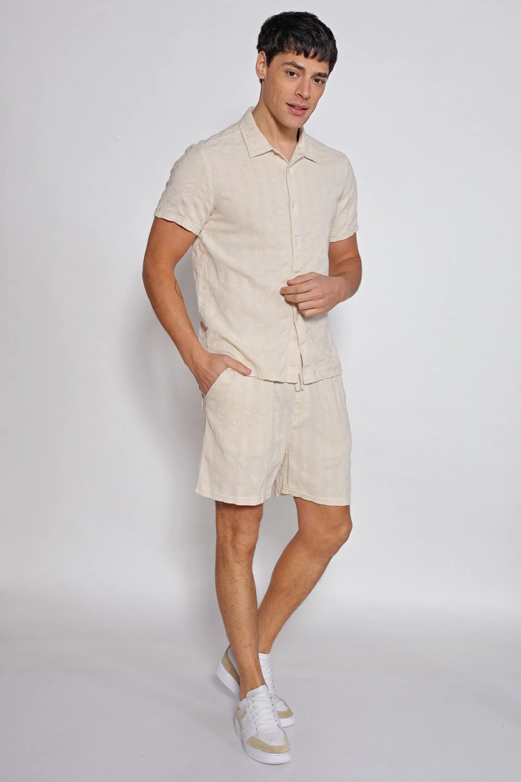 “Con un estilo moderno y aire urbano, destaca por su calce holgado y una textura que aporta comodidad y frescura”.