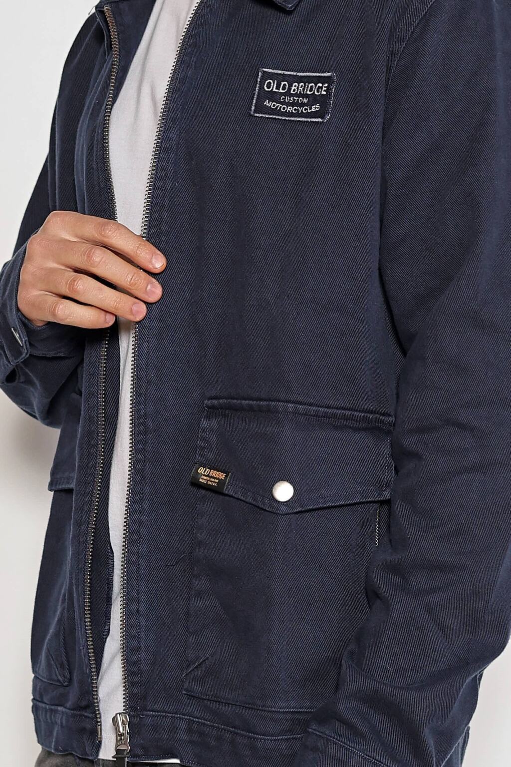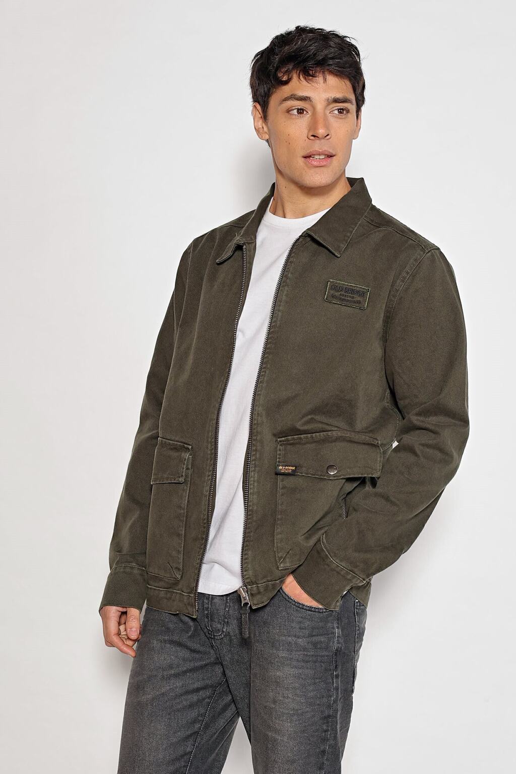 Campera de gabardina de puro algodón. Cuenta con 2 bolsillos plaque, cierre metálico frontal y aplique bordado en pecho izquierdo. Su lavado gastado le otorga un look vintage, tiene un calce regular.