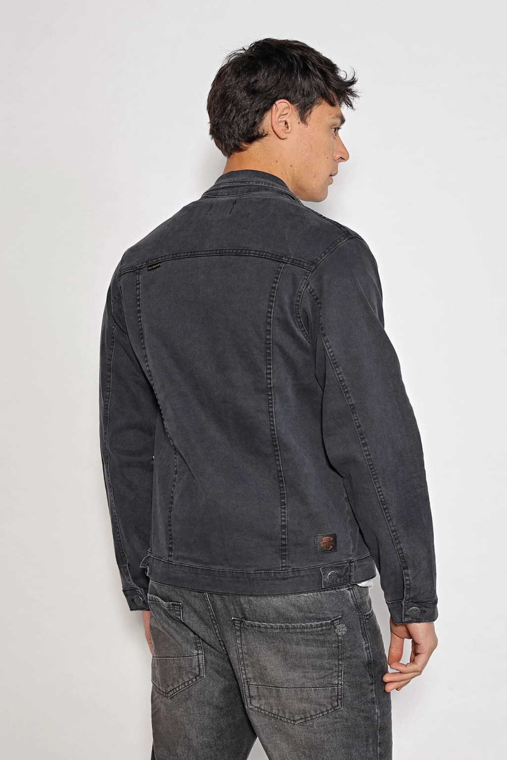 Campera de denim de algodón con elastano color Negro. Tiene un lavado suavizado, con desgastes y detalles de arrugas en brazos. Lleva botones al frente en color cobre con distinción de la marca. Ideal para un look urbano.