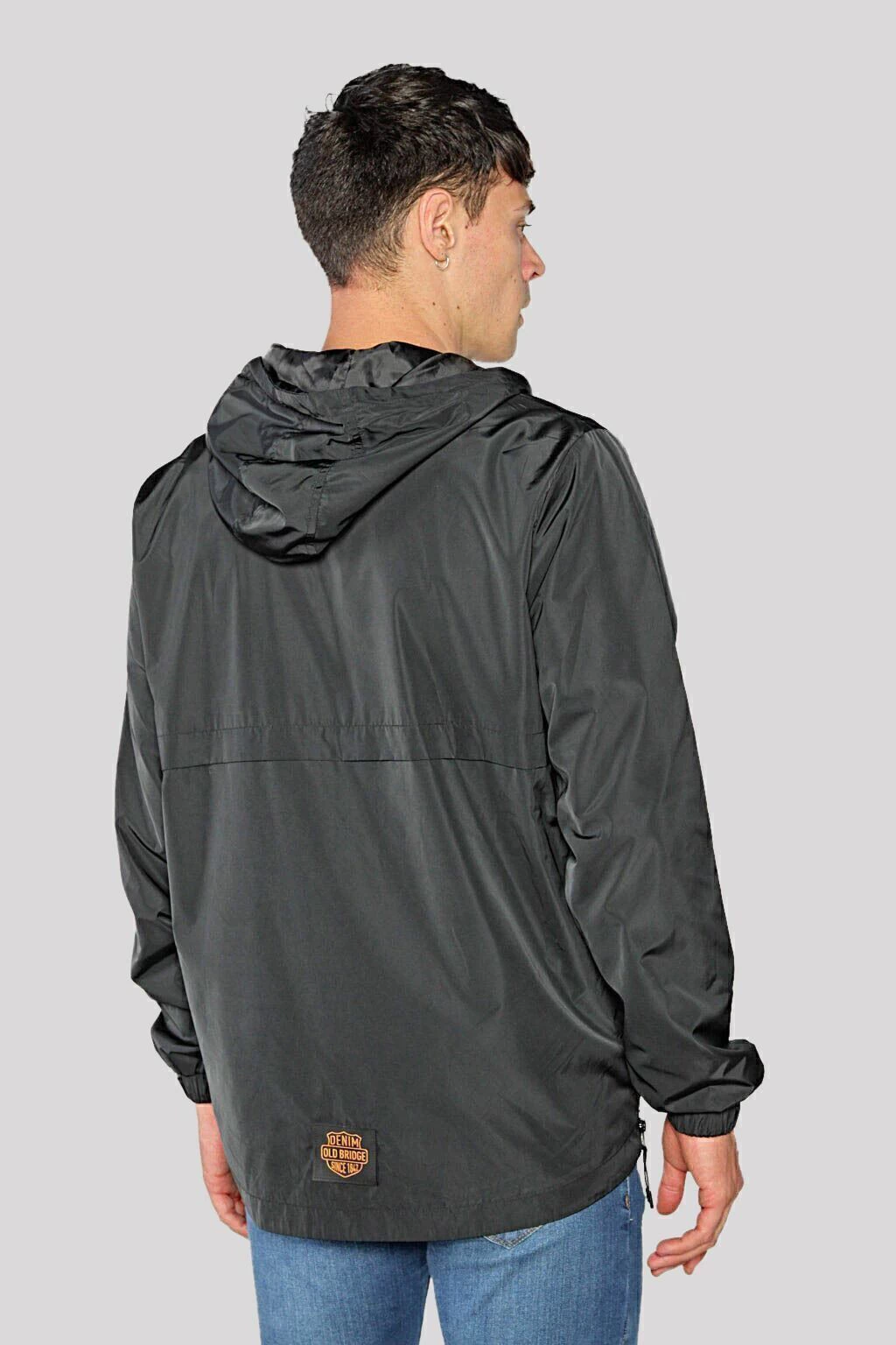Anorak de nylon. Posee capucha y bolsillo canguro. En los laterales tiene un cierre para abrir y dar mayor amplitud en la zona del ruedo. Calce holgado.