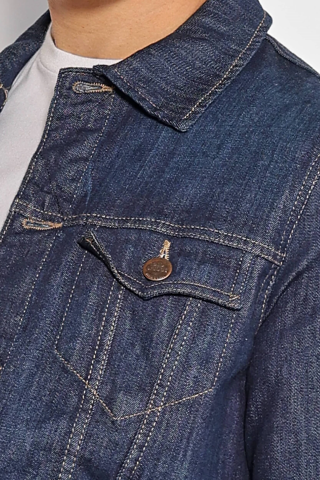 “Campera de denim con elastano, de calce cómodo y lavado intenso. Con detalles localizados y arrugas marcadas, es una prenda clave para un look urbano con personalidad”.