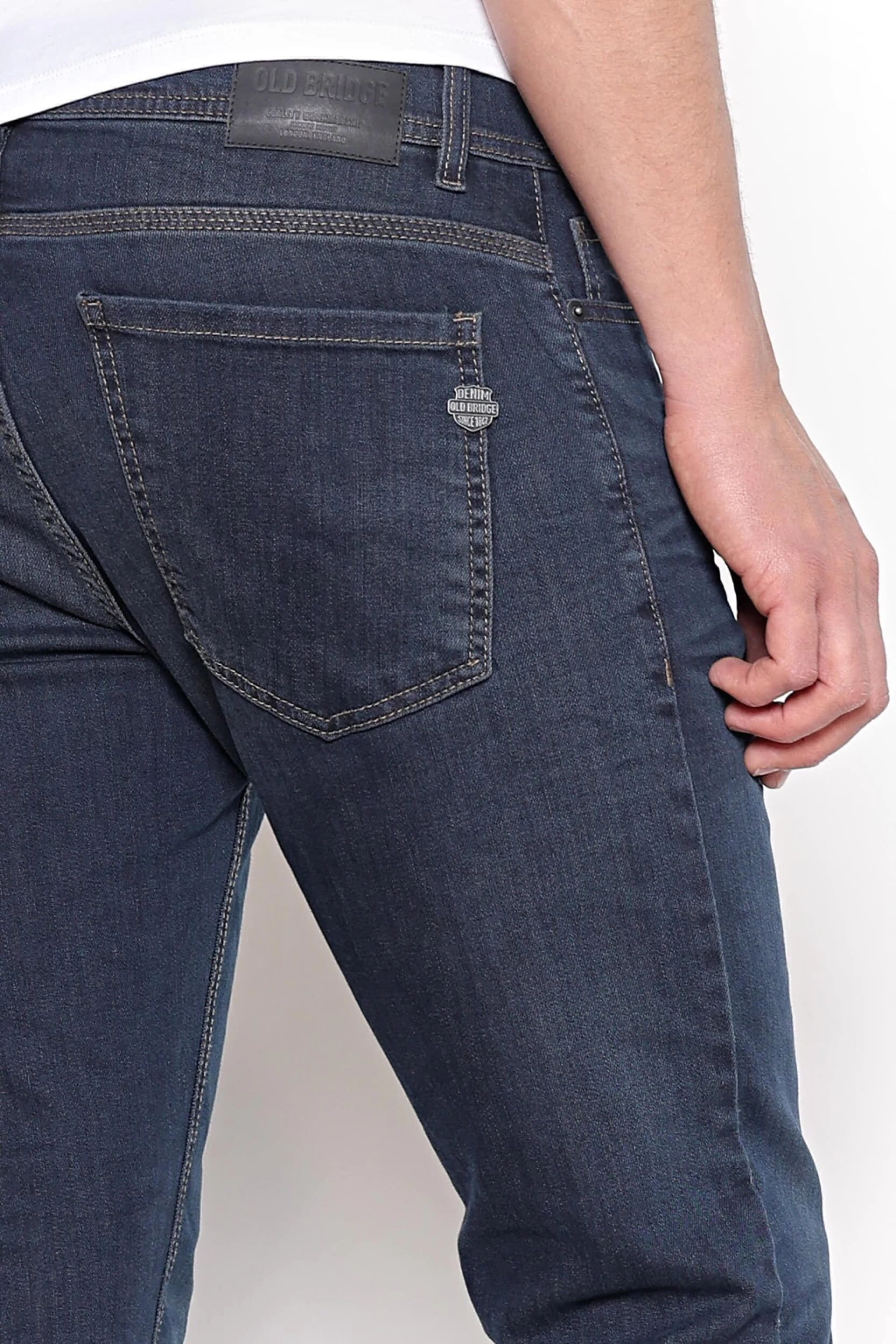 Denim de algodón con elastano, de tiro alto y calce regular fit. Su cartera lleva cierre. Tiene un lavado azul oscuro con focos suaves en piernas, y bigotes en caja, las costuras son de color BEIGE. Se recomienda lavar del revés.