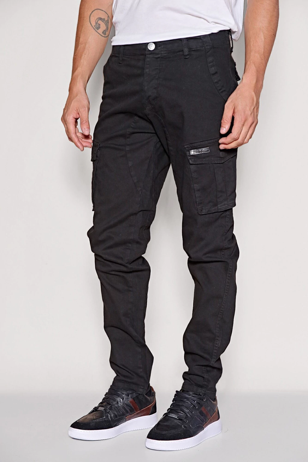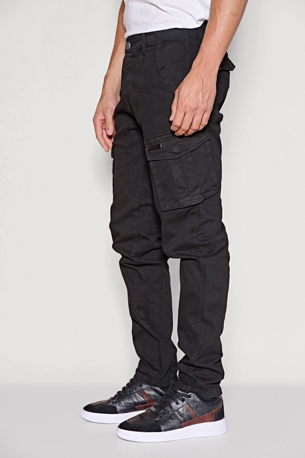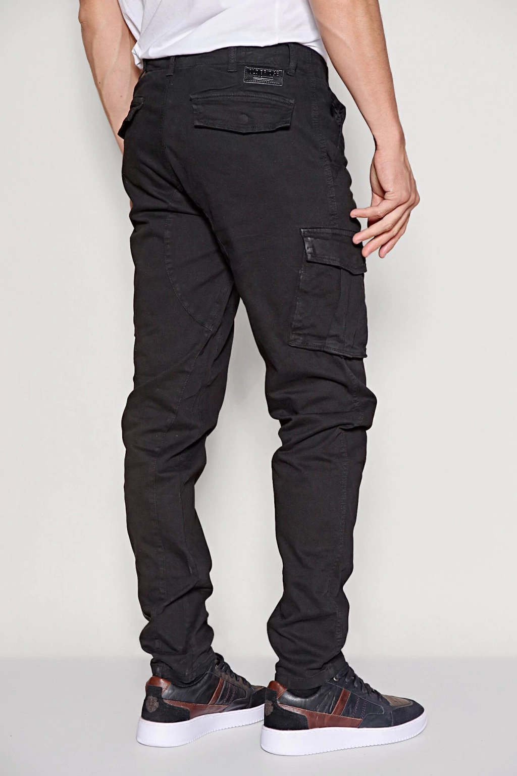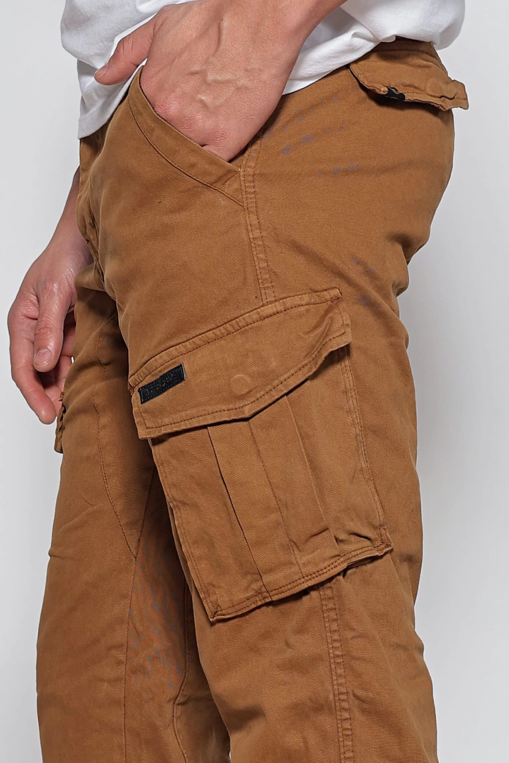 Pantalón cargo de gabardina de algodón con spandex, con un lavado stone fuerte que le otorga un look gastado. Tiene un calce regular, y cuenta con dos bolsillos delanteros, dos laterales, y dos trasero.