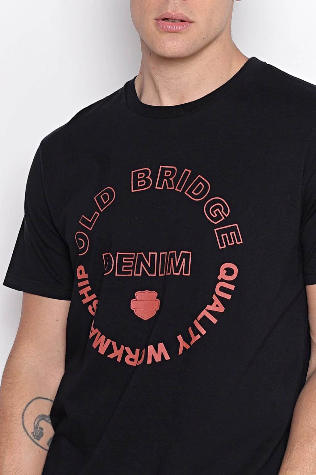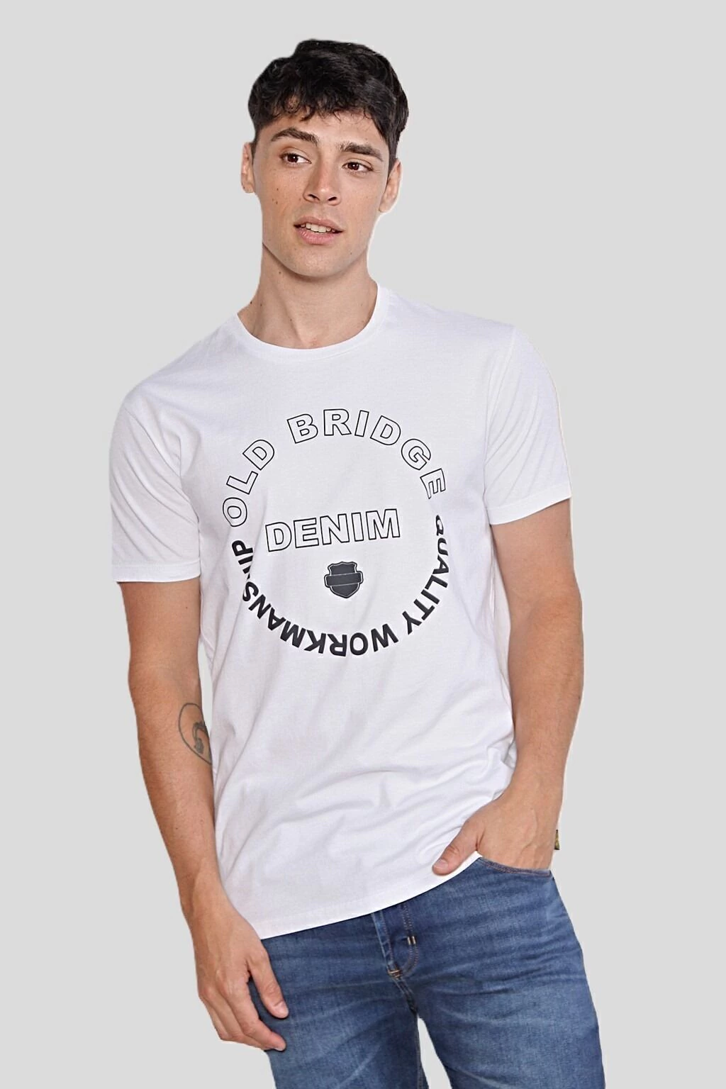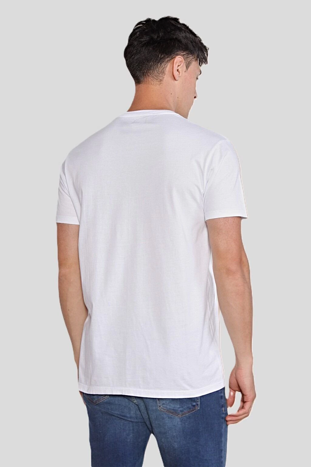 Remera estampada de escote redondo, mangas cortas, y cuello ribb al tono. Se encuentra confeccionada en jersey puro algodón. En el frente lleva una estampa sin tacto. Su Calce es regular.