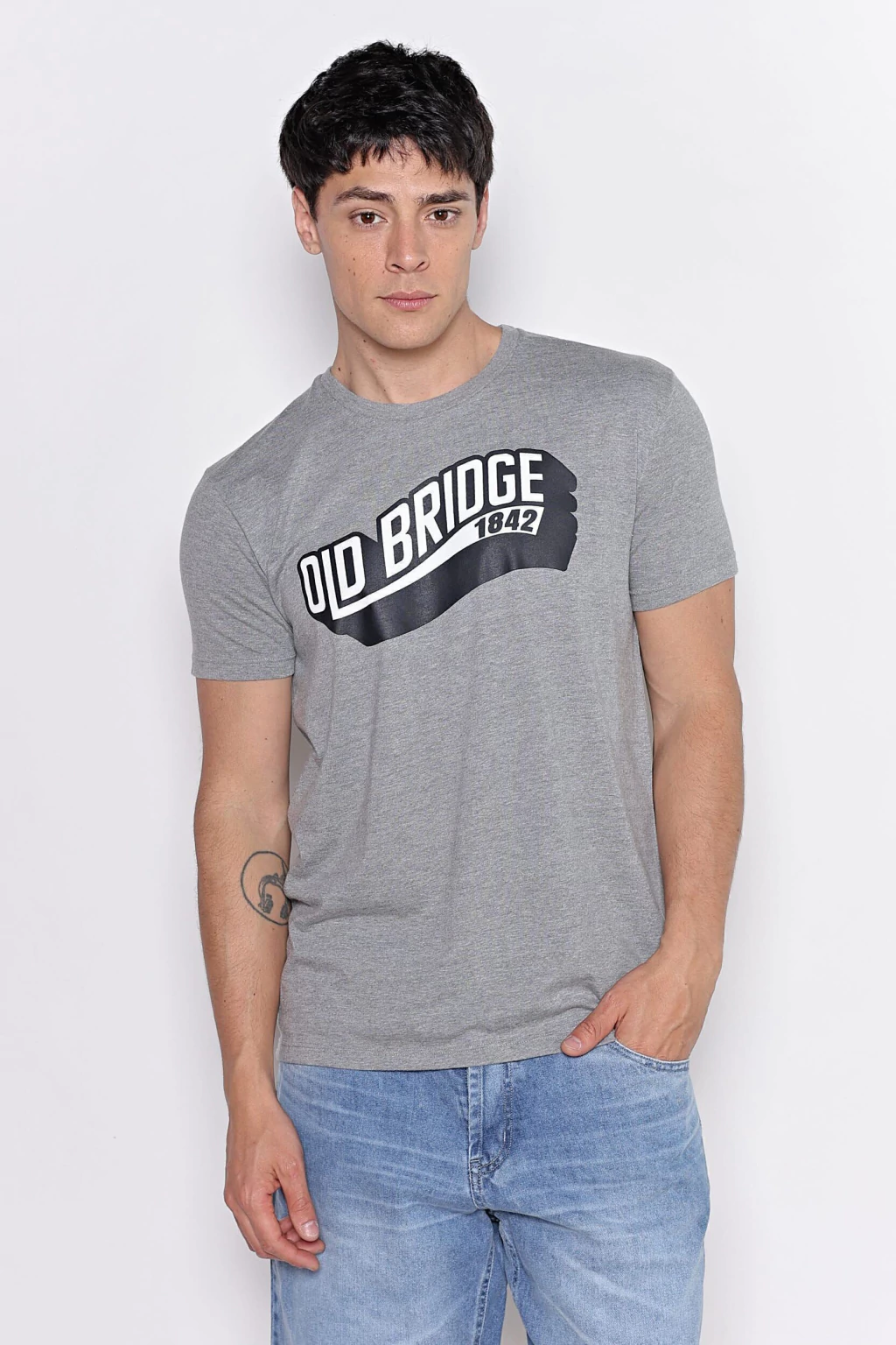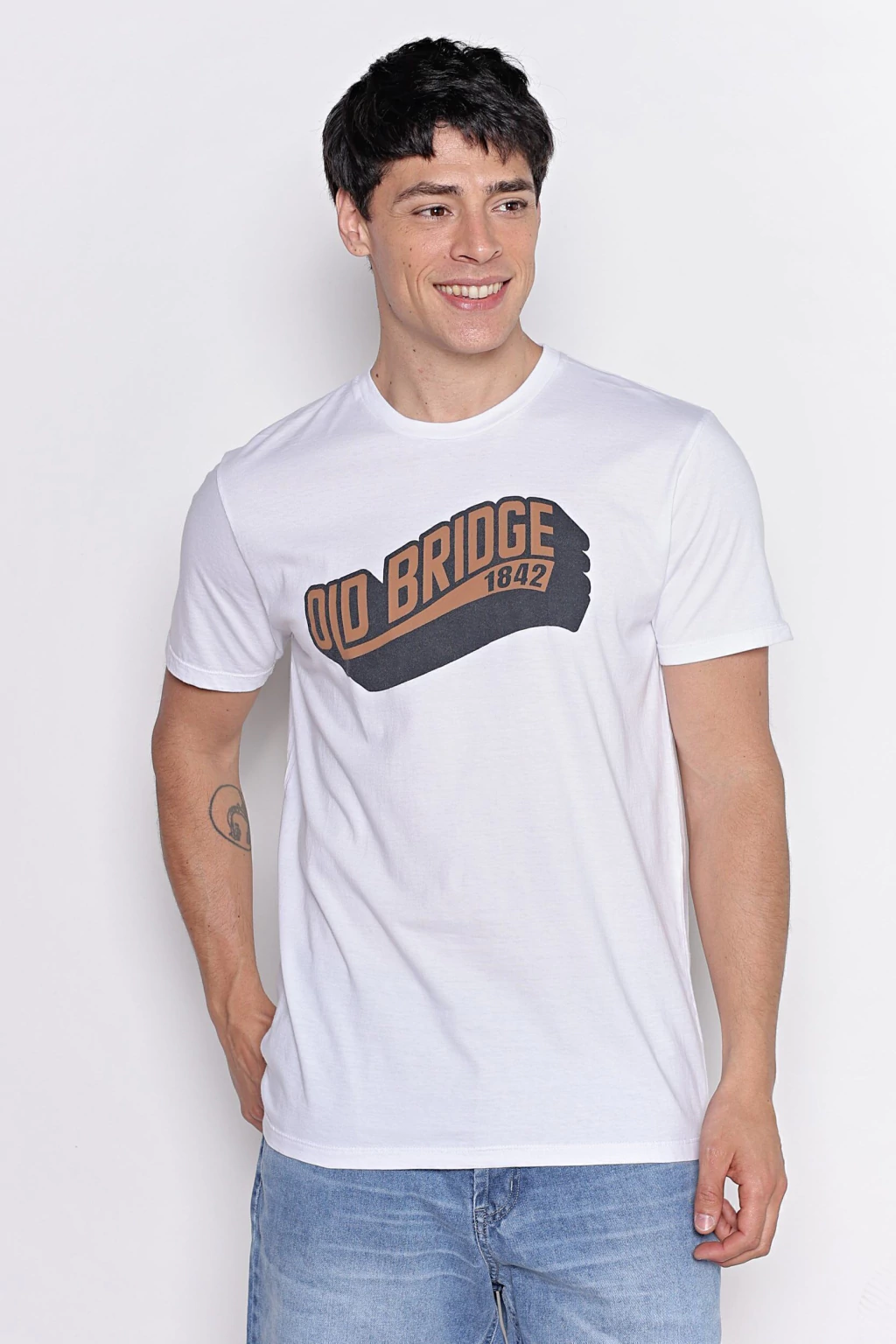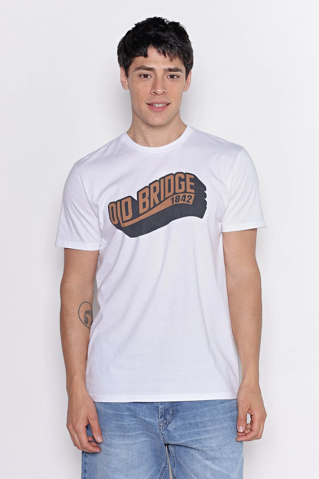 Remera estampada escote redondo, de mangas cortas, con cuello en ribb al tono. Se encuentra confeccionada en jersey de puro algodón, y lleva en el frente una estampa con tacto. Su calce es regular.