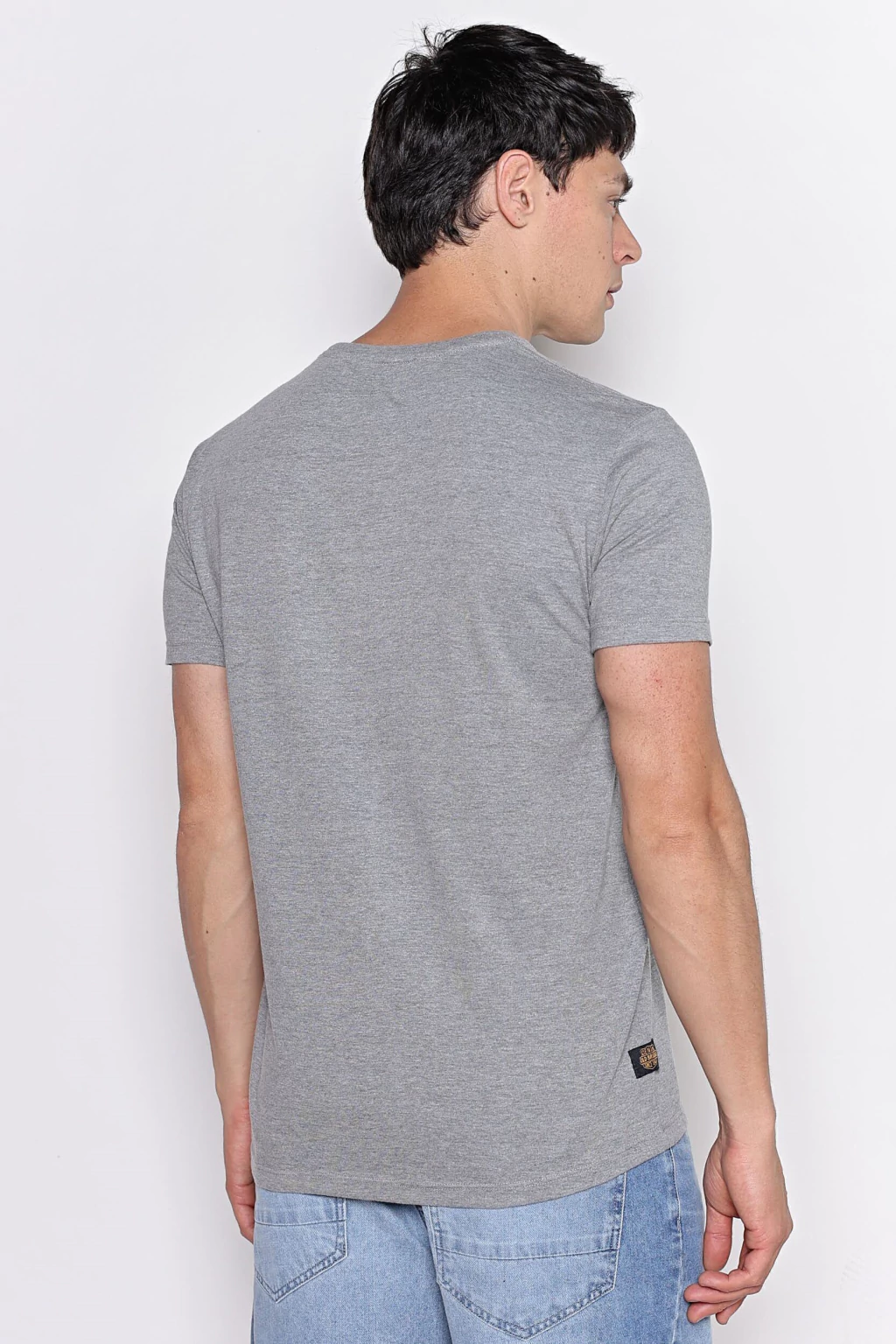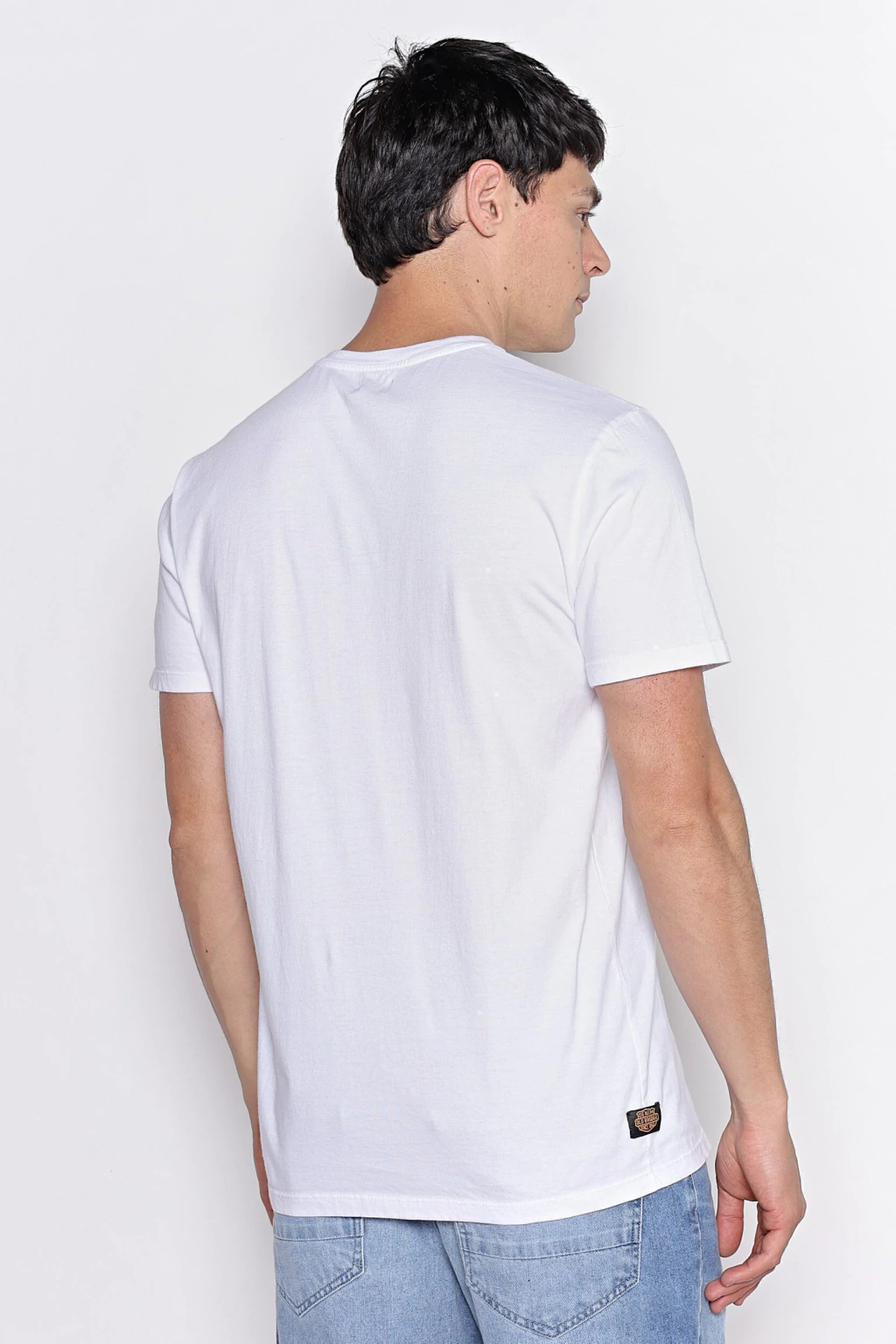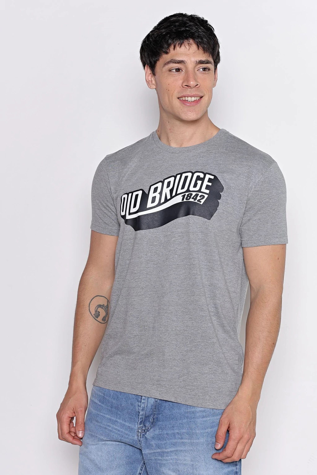 Remera estampada escote redondo, de mangas cortas, con cuello en ribb al tono. Se encuentra confeccionada en jersey de puro algodón, y lleva en el frente una estampa con tacto. Su calce es regular.