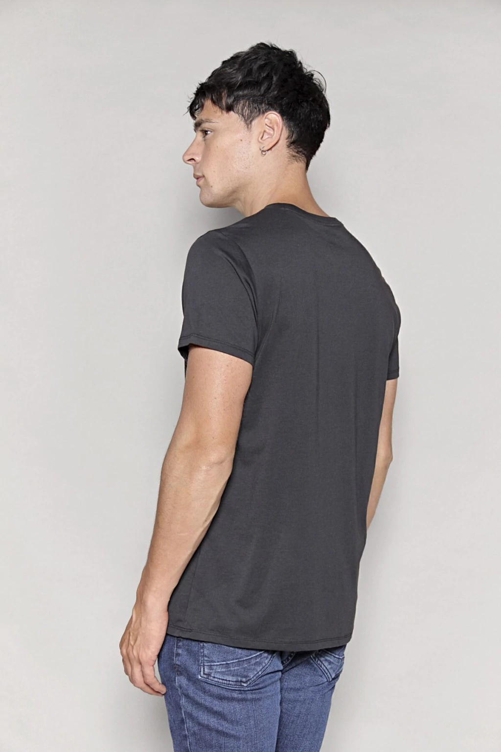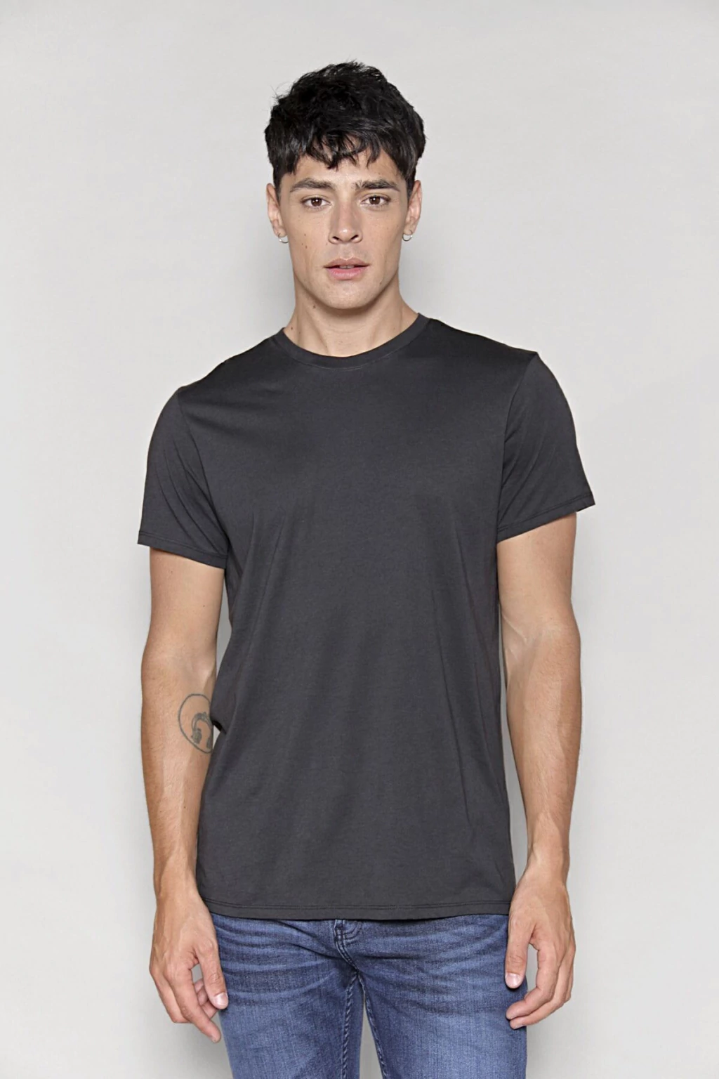 Remera premium de escote redondo, mangas cortas, con cuello en ribb al tono. Confeccionada en algodón pima peruano, super liviano y suave al tacto. Calce regular.