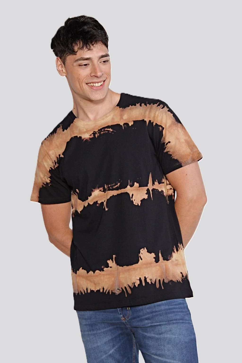 Remera escote redondo, mangas cortas, con cuello en ribb al tono. Confeccionada en jersey puro algodón, y lleva un proceso de lavado artesanal batik. Calce regular.