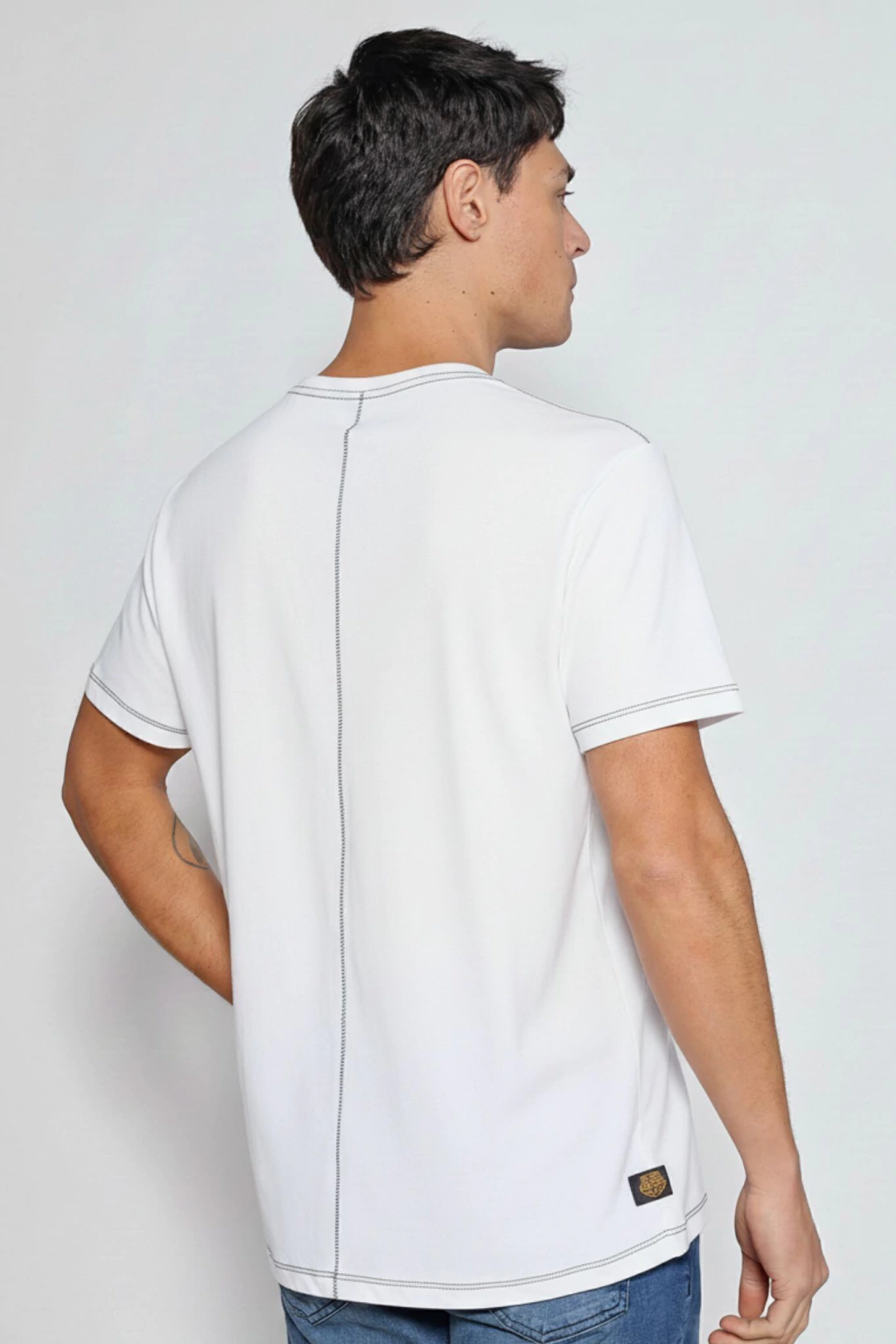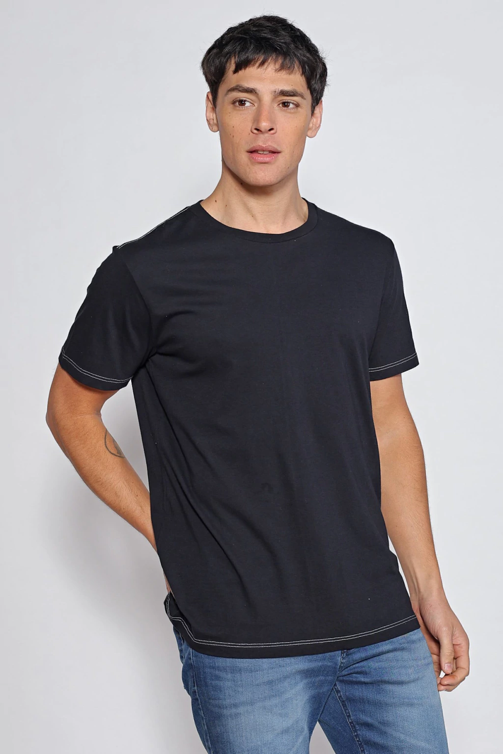 Remera escote redondo, de mangas cortas, con cuello ribb al tono y detalles de costuras a contratono. Se encuentra confeccionada en jersey de puro algodón. Su calce es regular.