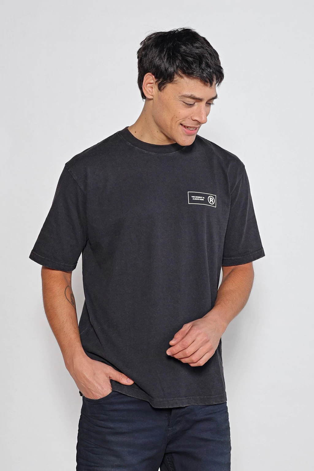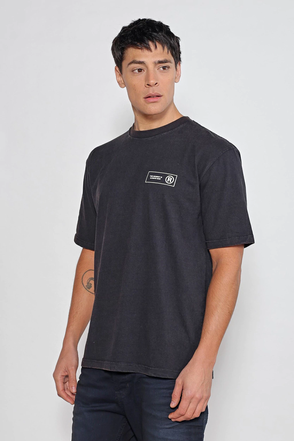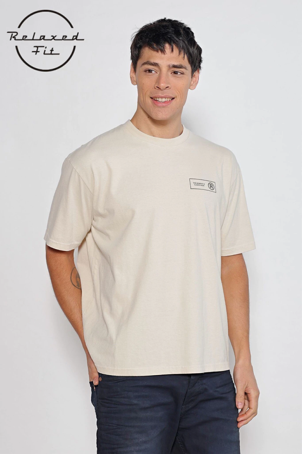 Remera oversize estampada de escote redondo, mangas cortas, y cuello ribb al tono. Esta confeccionada en jersey puro algodón pesado. Cuenta con una estampa en el frente y espalda sin tacto. Su calce es holgado.