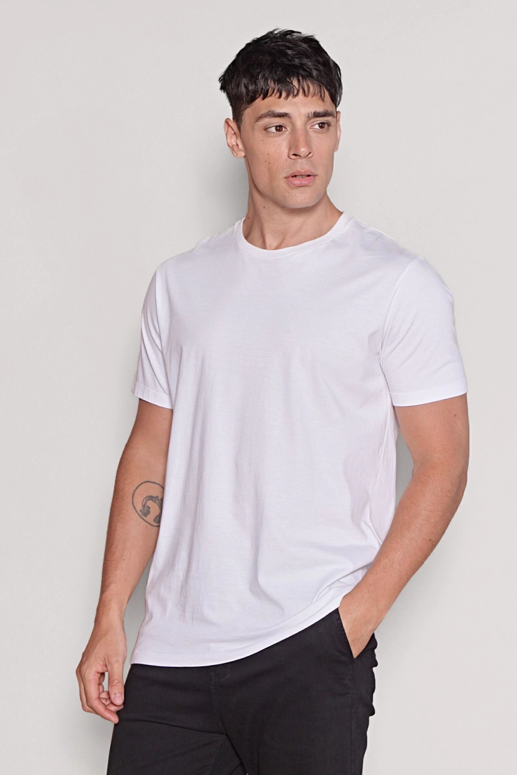 Remera básica escote redondo, mangas cortas, con cuello en ribb al tono. Confeccionada en jersey puro algodón. Su calce es regular.