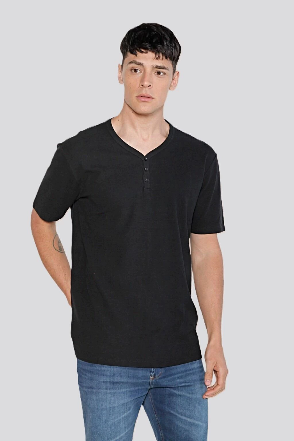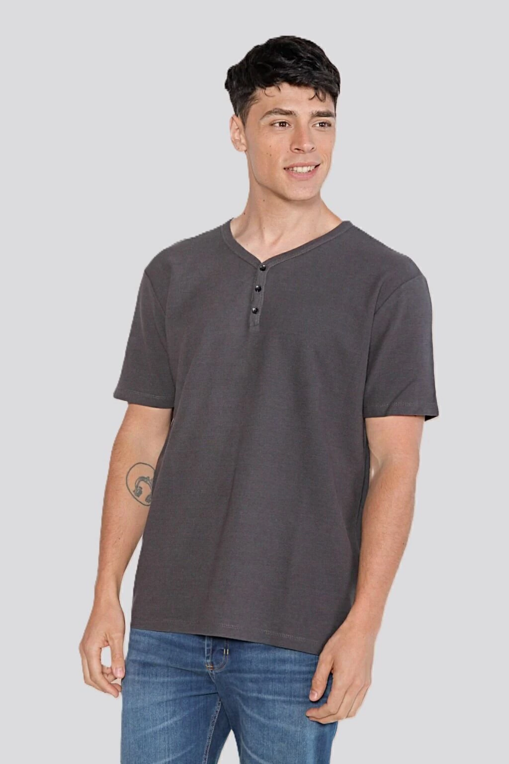 Remera escote en "V", manga corta, con cartera y botones. Confeccionada con tela micro panal de puro algodón. Calce Regular.