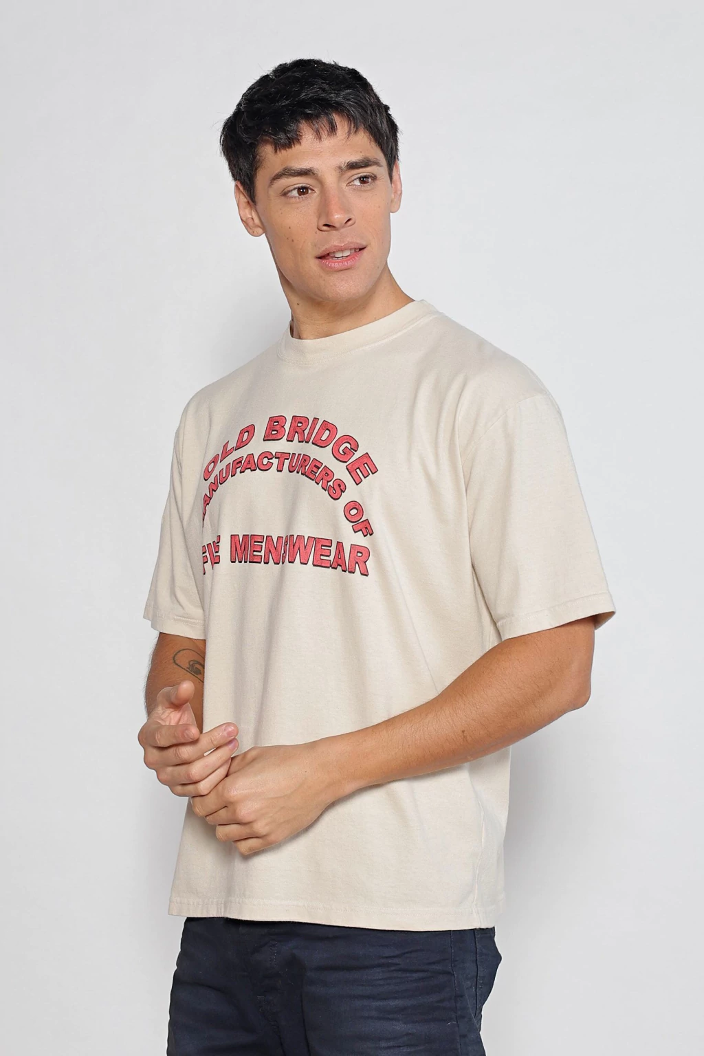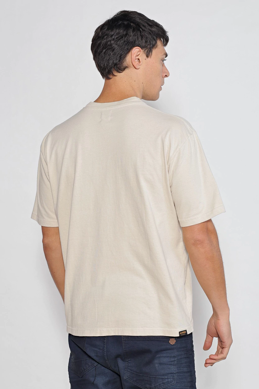 Remera oversize estampada de escote redondo, mangas cortas, y cuello ribb al tono. Esta confeccionada en jersey puro algodón pesado. Cuenta con una estampa en el frente sin tacto. Su calce es holgado.