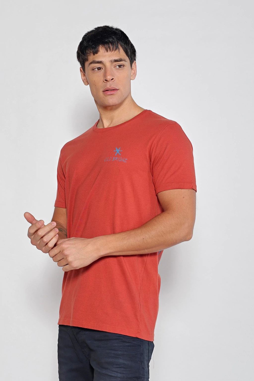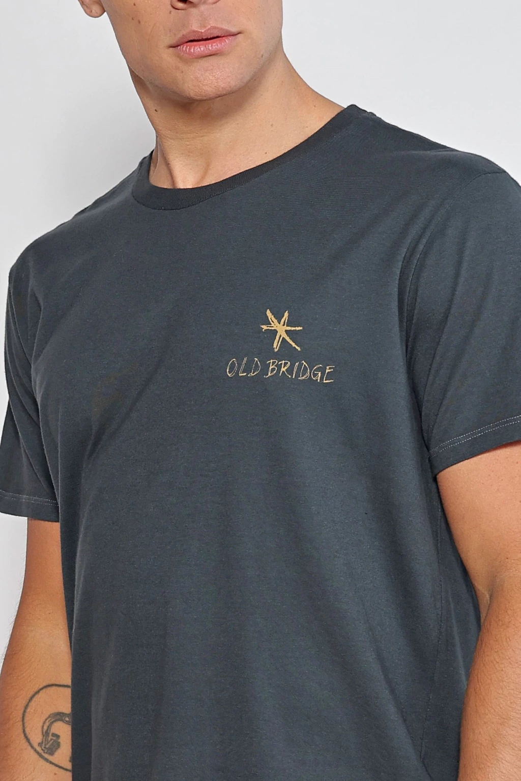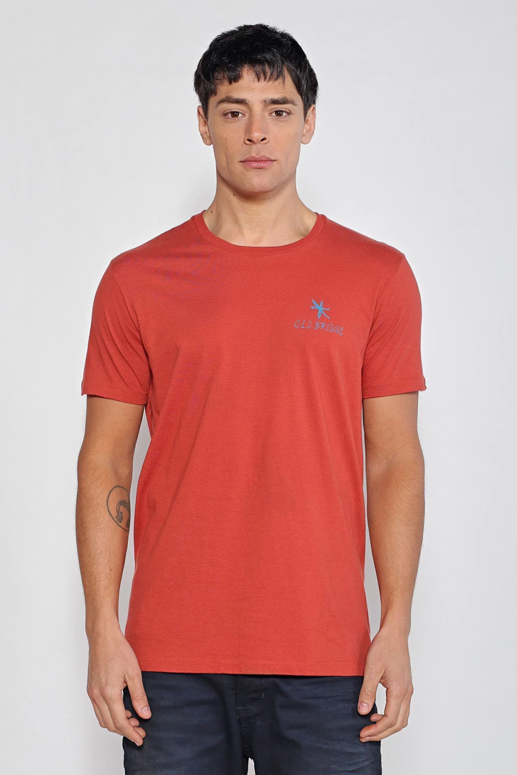 Remera estampada escote redondo, de mangas cortas, con cuello ribb al tono. Está confeccionada en jersey de puro algodón, y cuenta con un proceso artesanal donde se le otorga un color más vibrante y diferenciado. Tiene una estampa en el frente y espalda sin tacto. Su calce es regular.